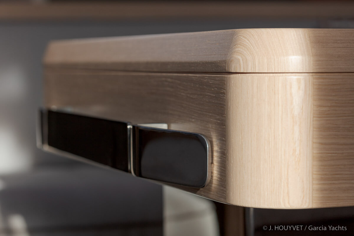 Sur un voilier d'exploration Garcia, au mouillage comme au port, on est à l’intérieur en interaction permanente avec l’extérieur. Debout ou assis, les grands comme les petits, grâce aux très larges surfaces vitrées et aux hublots de coque, ont toujours vue sur l’extérieur, sur la mer, sur les voiles, sur le paysage. Cette sensation unique de se sentir dehors en étant dedans est incomparable lorsque l'on vit sur un bateau au long cours.